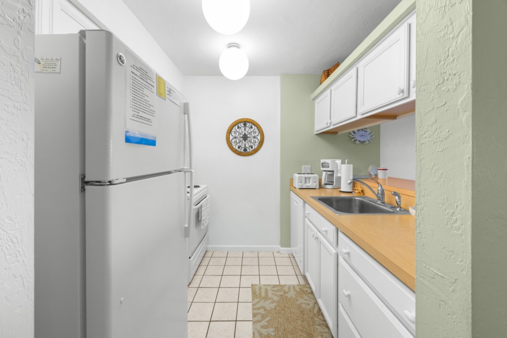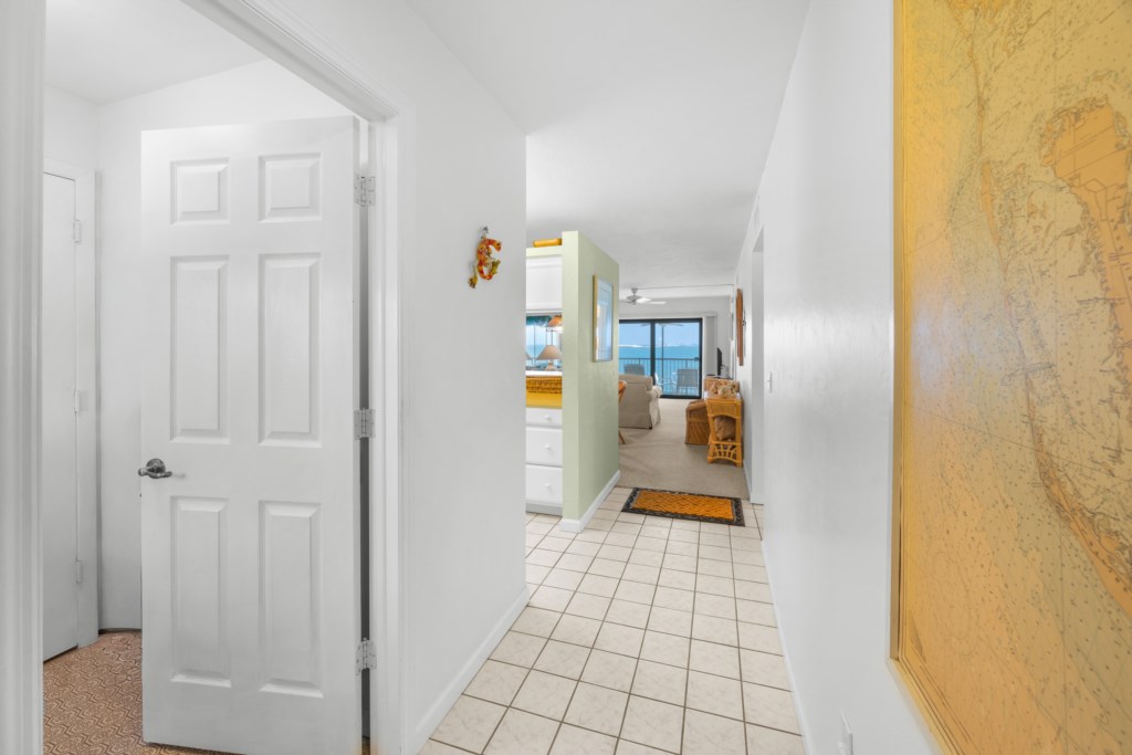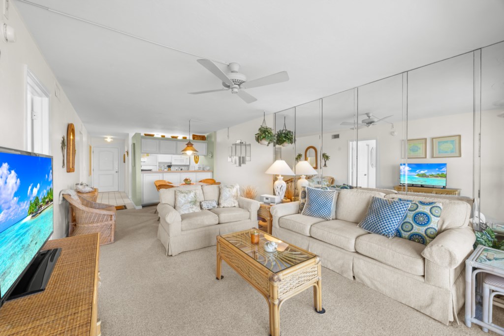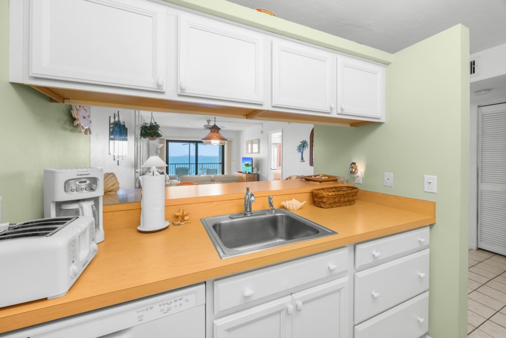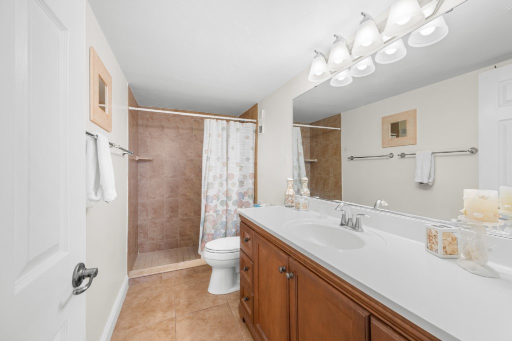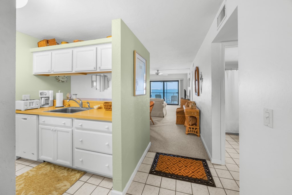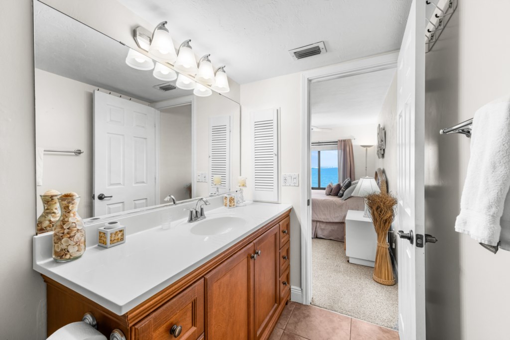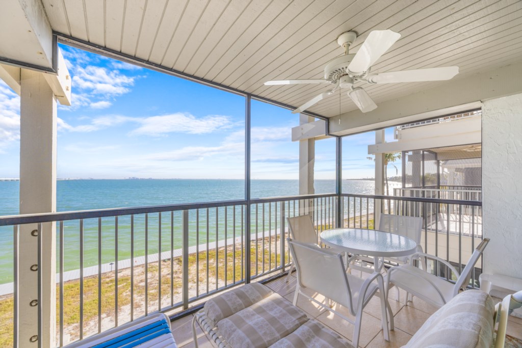Inside, this second-floor escape is bright, airy, and designed for easy coastal living. The open floor plan invites connection, whether you’re gathering around the indoor dining table or enjoying meals al fresco with a warm breeze. The living room is cozy and welcoming, with a flat-screen TV, pull-out sofa, and stunning bay views that never get old. The master suite offers a peaceful retreat with a queen bed, water views, and a beautifully updated bathroom featuring a walk-in tiled shower. A cheerful guest bedroom and bath ensure comfort for family and friends.