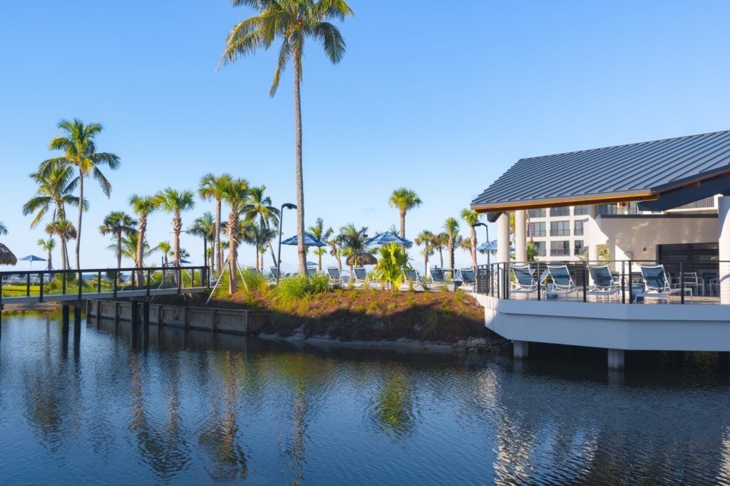 Sliding glass doors open to the large lanai, which offers stunning views of both the tropical grounds and the Gulf, providing a peaceful retreat where you can unwind and take in the beauty of your surroundings.
