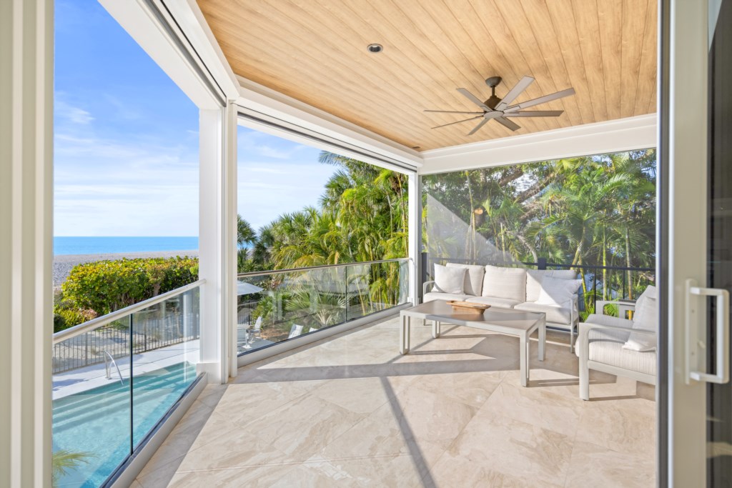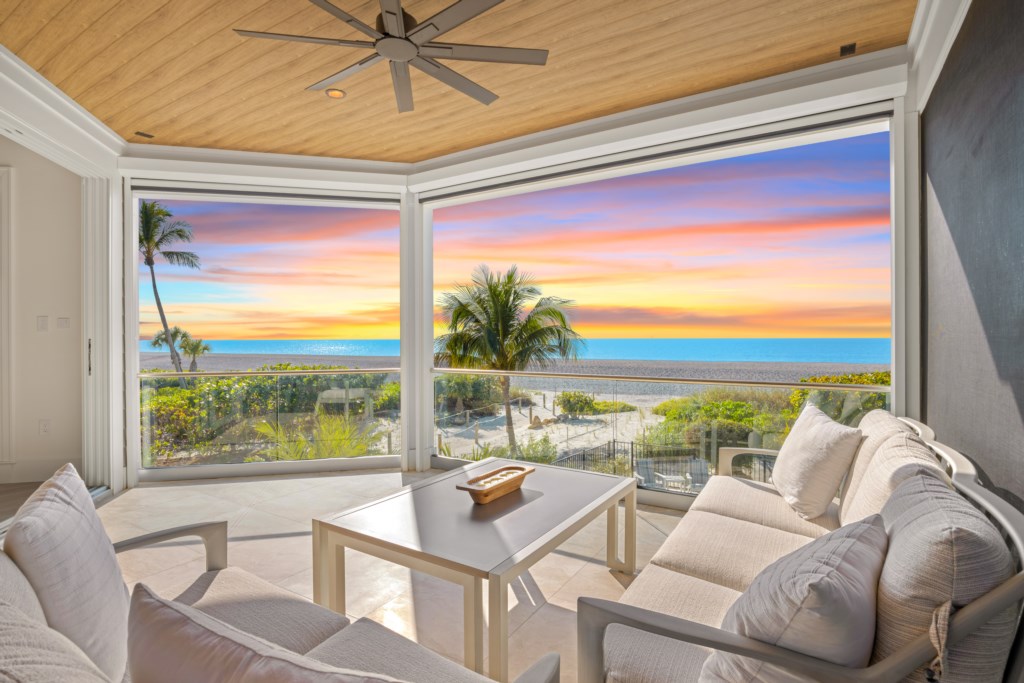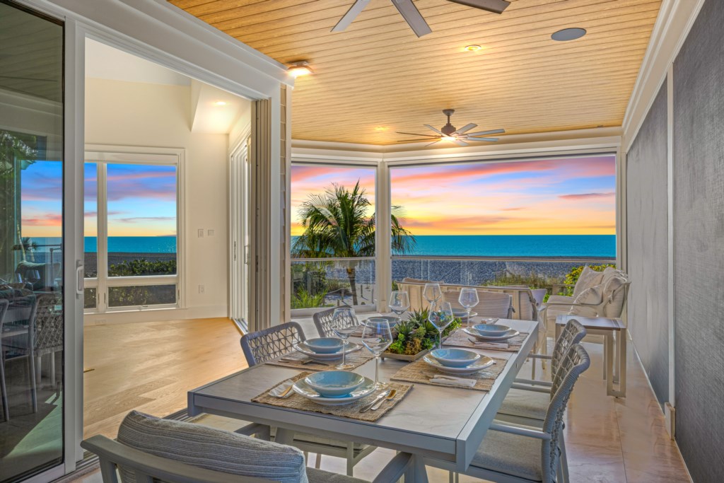 Extending directly off the living room, the expansive main-level lanai serves as an additional outdoor living and dining space. Large enough for family gatherings, shared meals, and relaxed lounging, it offers Gulf breezes, tropical views, and seamless indoor-outdoor flow—perfect for both daytime relaxation and sunset evenings.