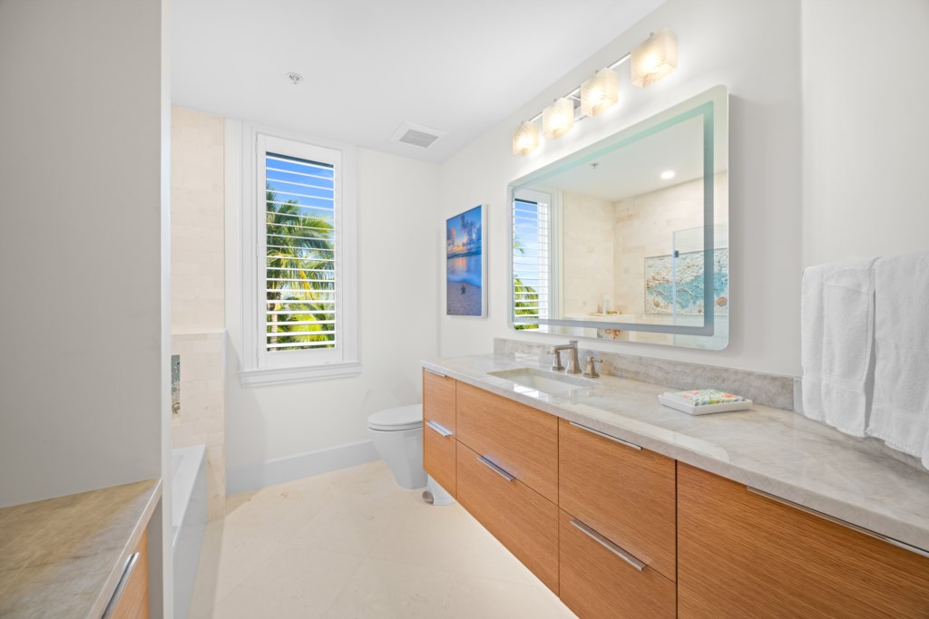 Also on the upper level is an additional guest bedroom with a king bed and its own private ensuite bathroom, making it a true secondary suite.