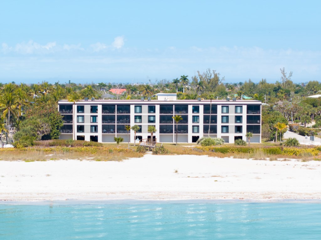 This is the ideal setting for a Sanibel Island getaway, offering oceanfront views, a pristine white sand beach, paved parking, in-unit laundry, a large screen TV with Wi-Fi and cable, and air conditioning for your comfort.