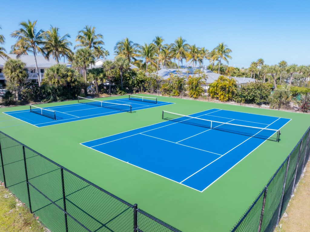 Amenities include a large heated pool, tennis courts, elevator access, and two spacious community gas grills—perfect for relaxing after a day in the sun.