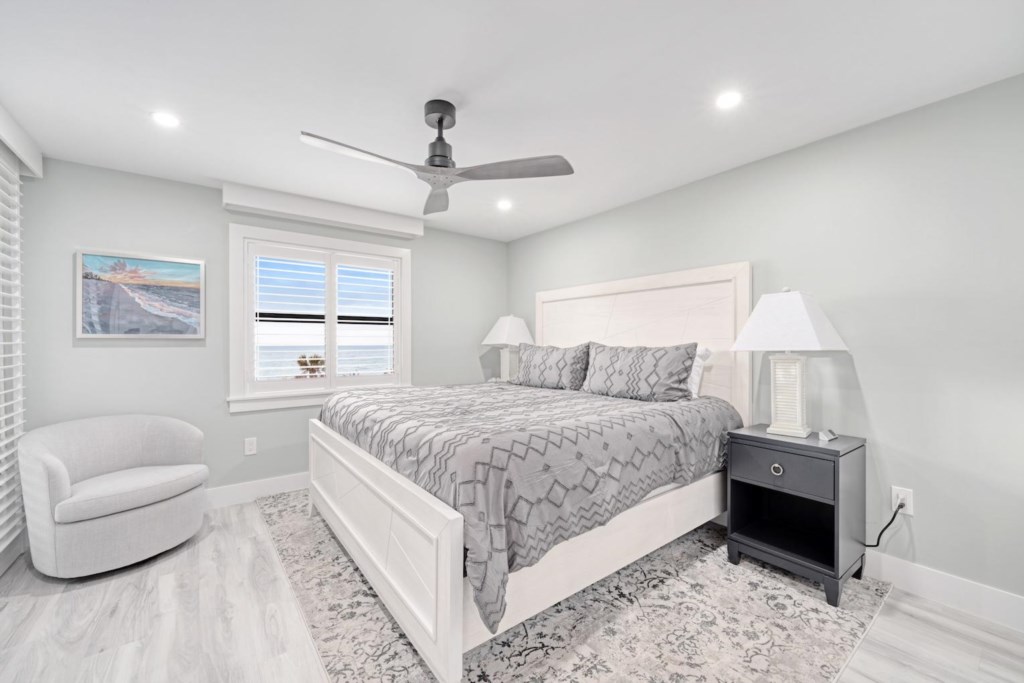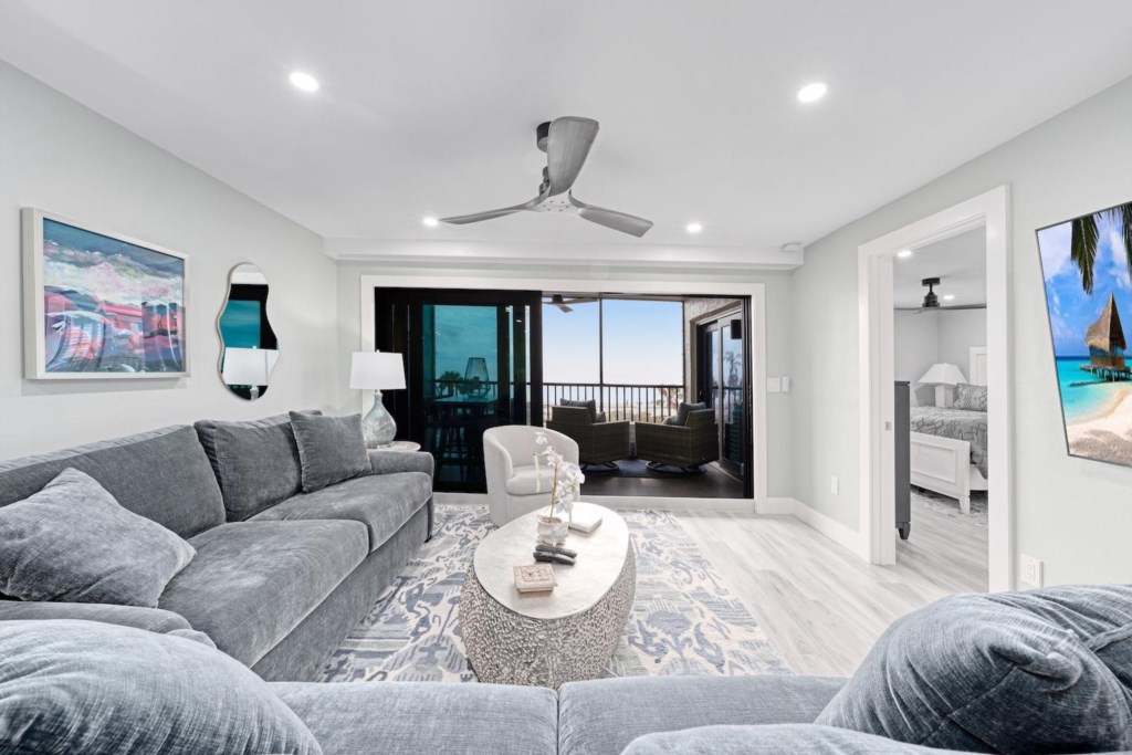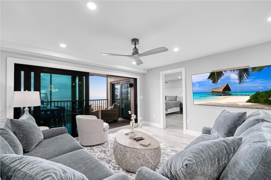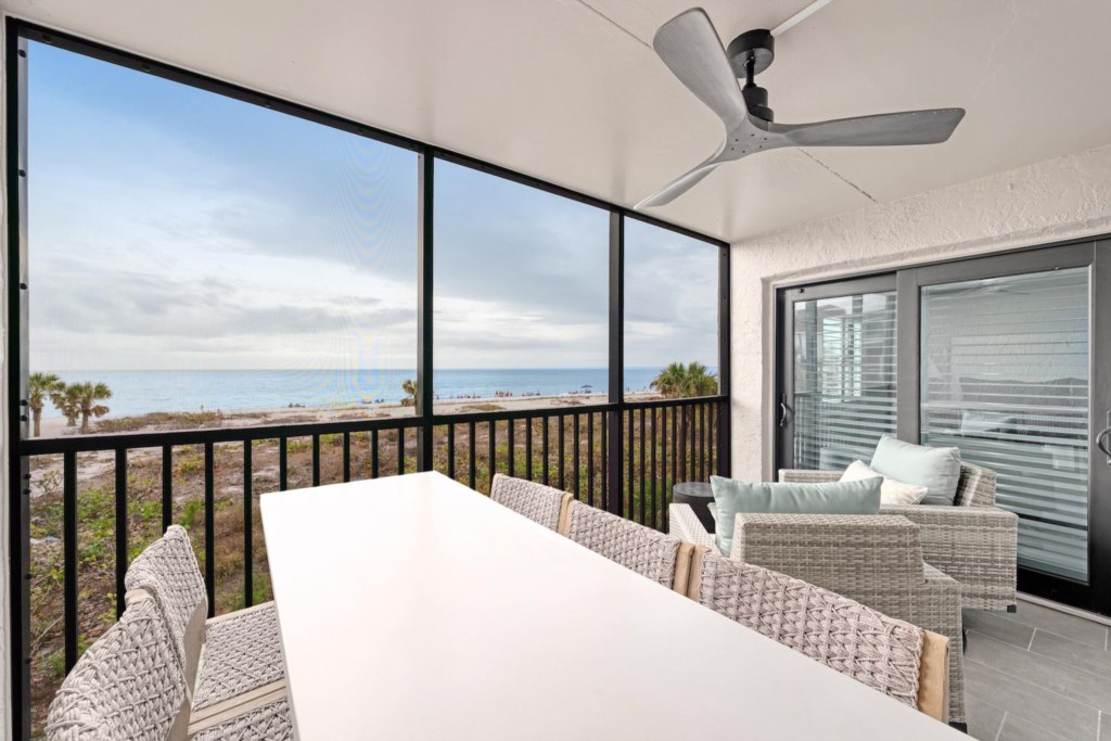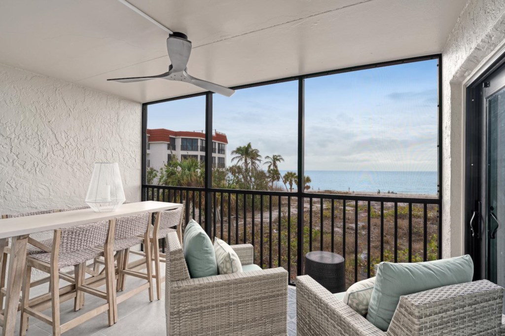 This tranquil luxury condo at Tarpon Beach on Sanibel has stunning views and beautiful grounds. Totally updated throughout. Wake to the sounds of the surf rolling in and enjoy your morning coffee on your lanai overlooking the Gulf. Two bedrooms, the master with a beautiful Gulf view, a sleep number king bed, wood floors, and sliding door to the spacious lanai. The master bathroom is totally remodeled with double sinks and a tiled shower. The guest bedroom features a sleep number twin and a sleep number full bed, a large closet and wood floors. The guest bath has a beautiful bathroom with a tiled shower. The living room has a large flat-screen TV and both bedrooms also offer flat-screen TVs. You are right on the beach and can enjoy Sanibel's famous shelling experiences. Enjoy the heated pool. Covered garage parking.