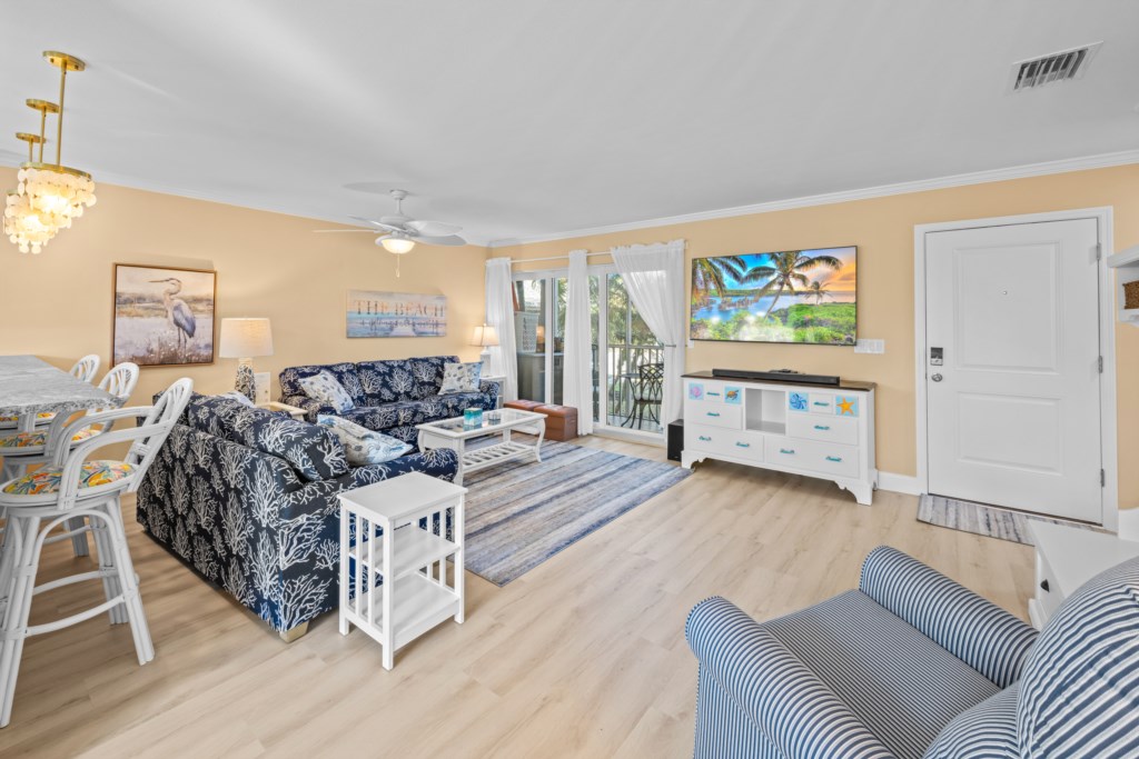 Laundry in the unit. We want to ensure your stay is as comfortable as possible. Please note that Seashells of Sanibel does not have elevators. All units are accessible only by stairs, so we kindly ask that you plan accordingly for luggage and mobility needs. The unit is located on the second floor.