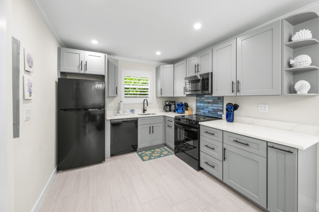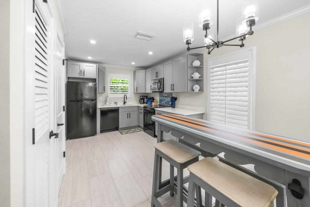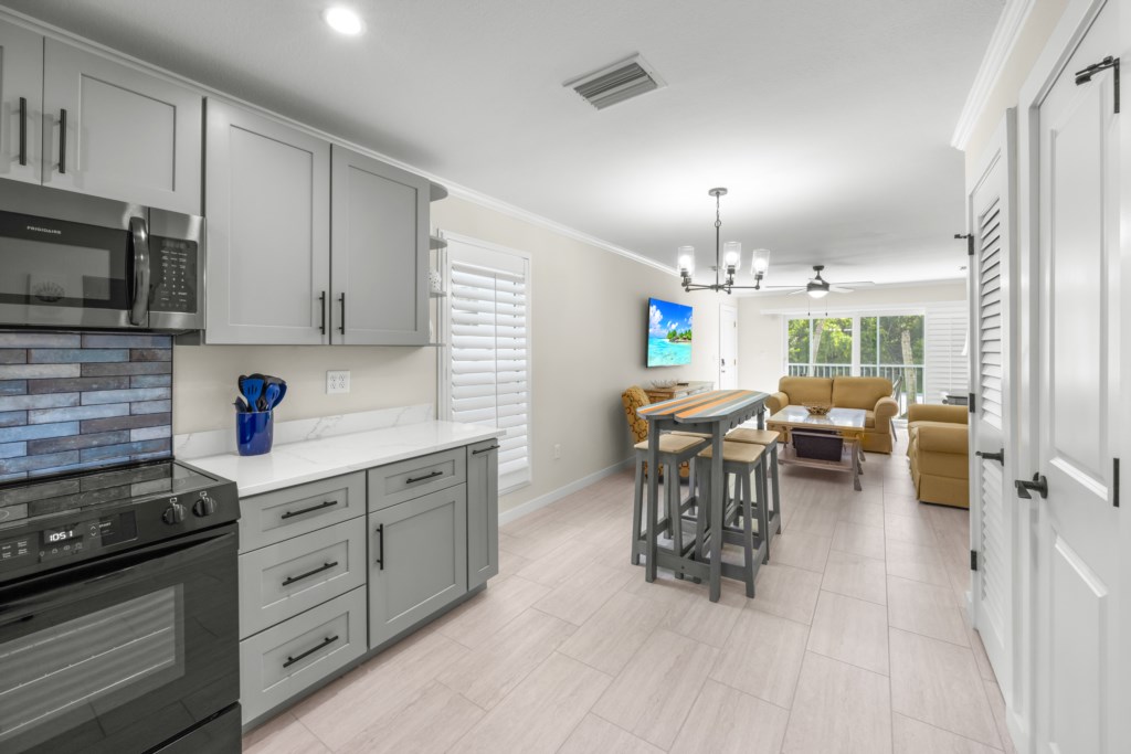 Seashells 24 offers the perfect blend of comfort and convenience for your Sanibel Island escape. This elevated first-floor condo features a king primary bedroom with an updated bathroom, complete with a beautiful tile backsplash. The kitchen has also been refreshed with tile accents and solid-surface countertops, making it a bright and functional space for preparing meals.