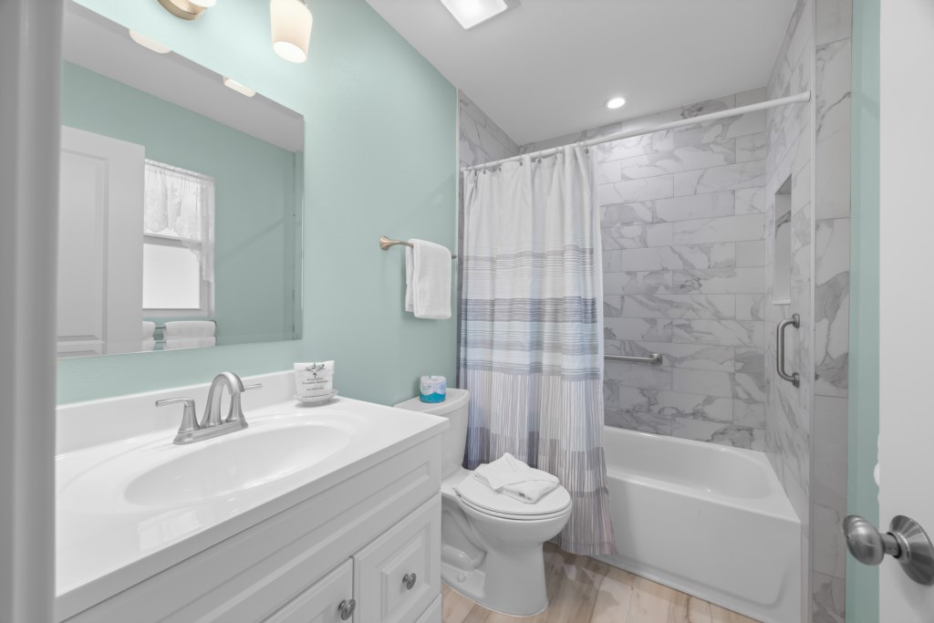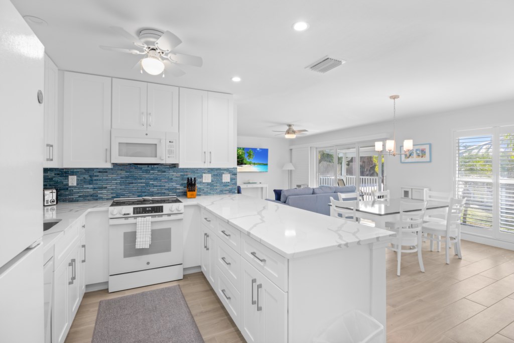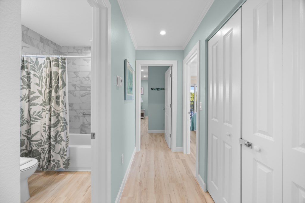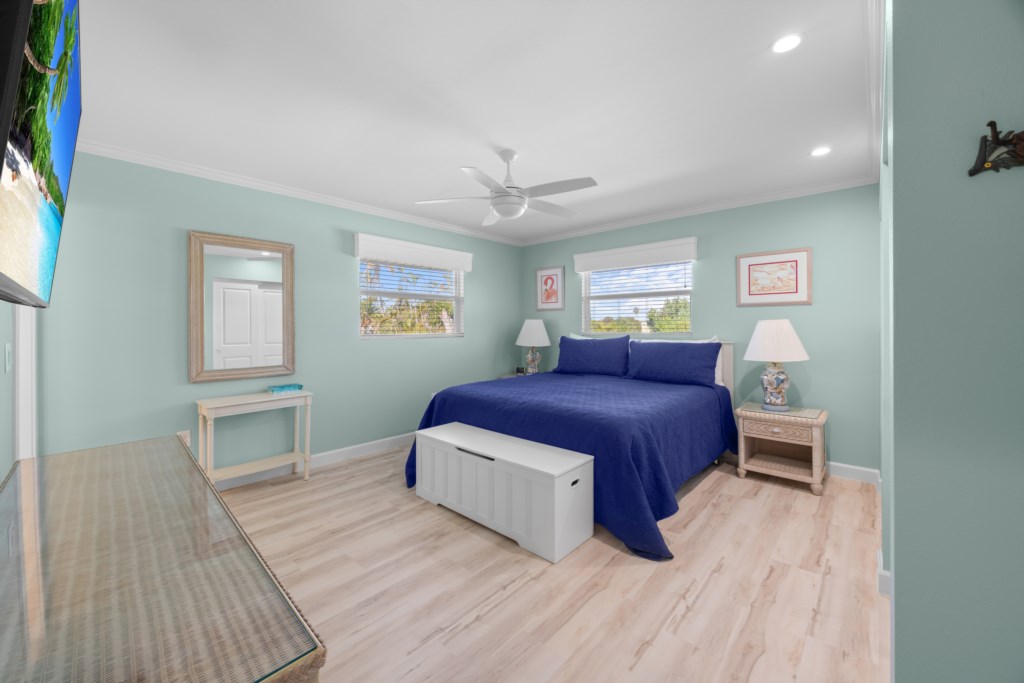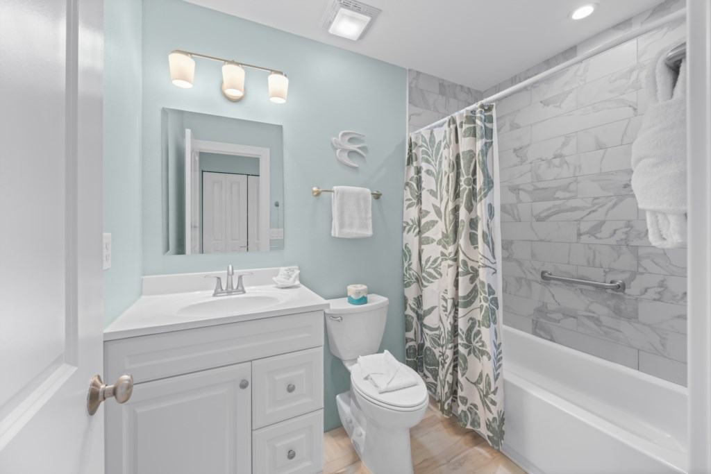 This spacious two-story townhome features coastal-chic décor, all-new furnishings, and laminate flooring throughout. The primary suite includes a king bed and a beautifully updated tiled walk-in shower. The guest bedroom offers a comfortable queen bed and an updated bath with a shower/tub combo. Additional sleeping space is available with a sleeper sofa, and the unit includes a washer and dryer for added convenience.