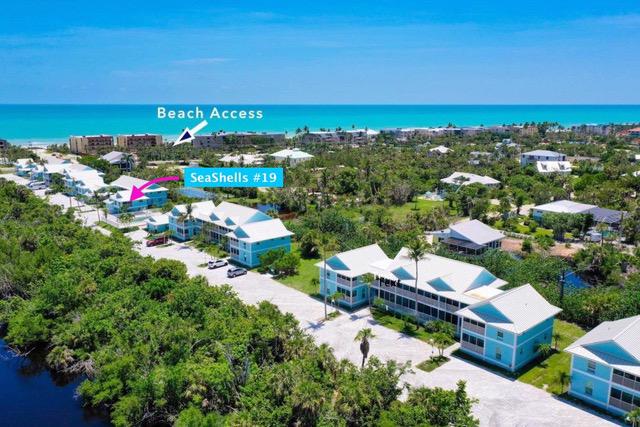 Seashells Unit 19 – A rare two-story townhome in the SeaShells of Sanibel community, located on the island’s peaceful west end with private deeded beach access and covered parking.