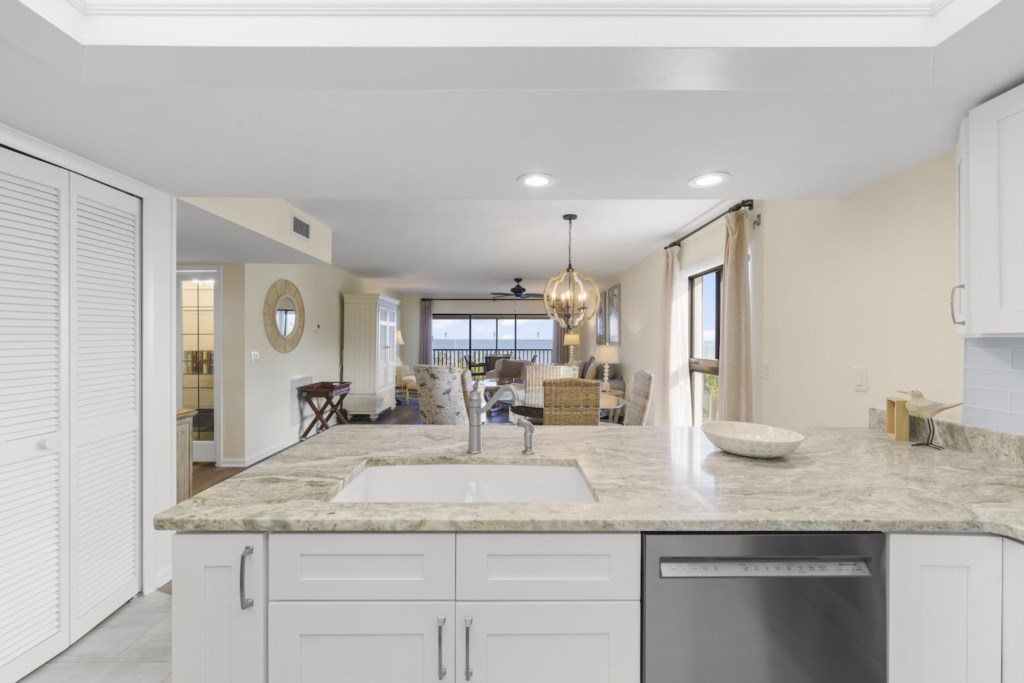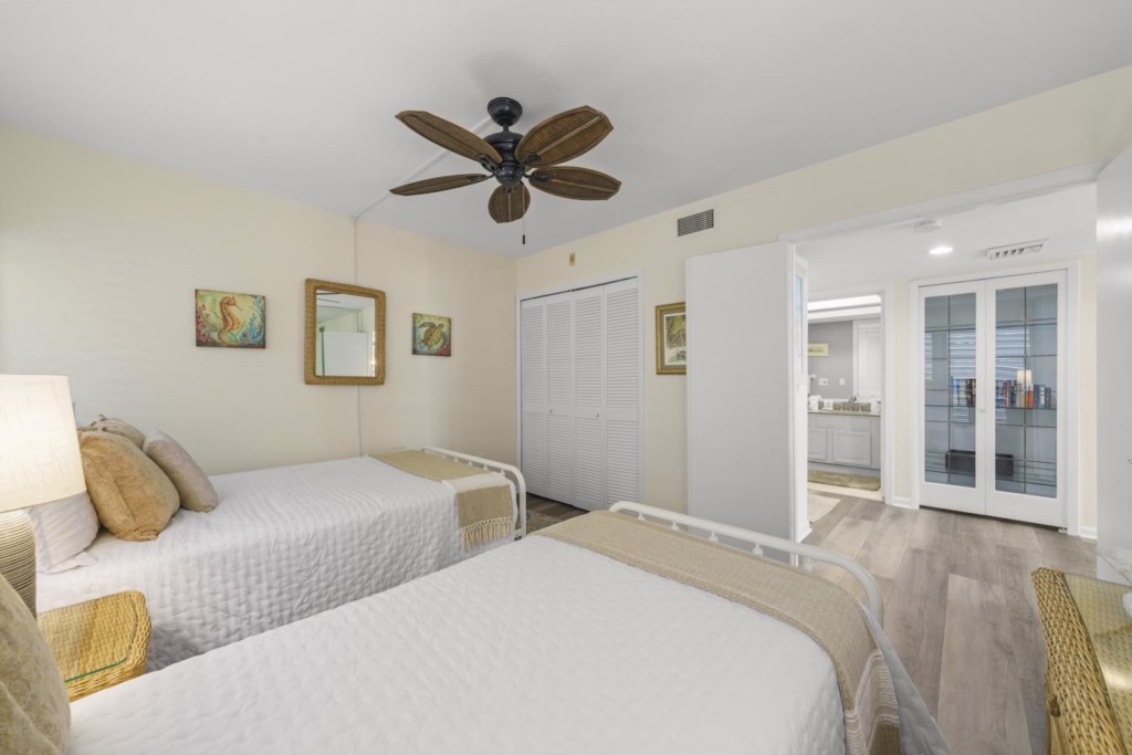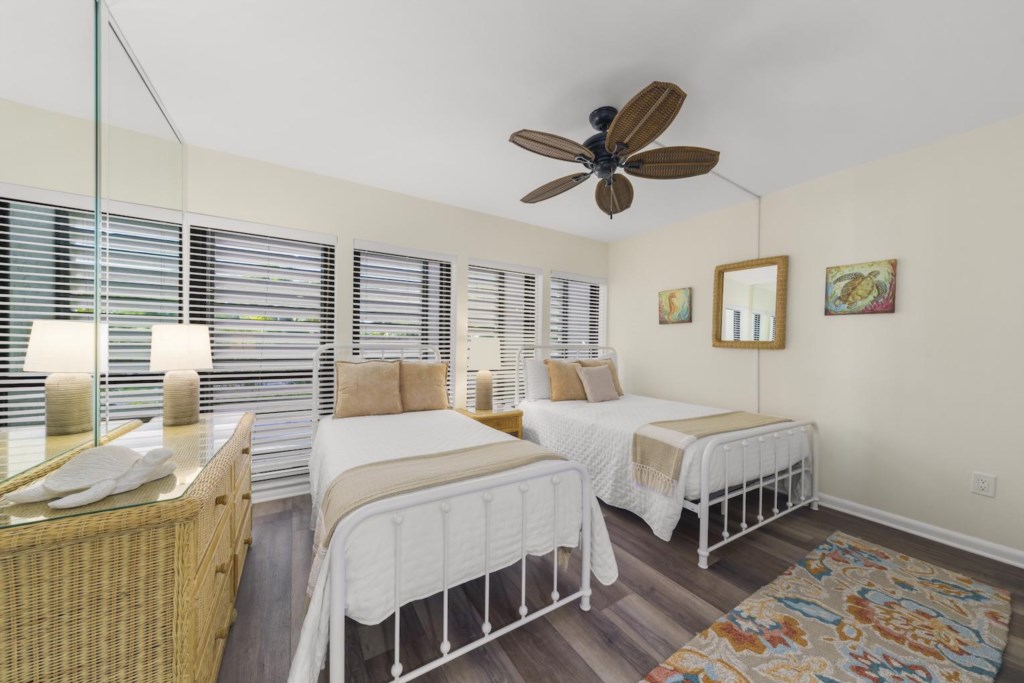 Inside, the condo is designed for comfort and easy vacation living. The primary bedroom offers a relaxing king bed and soft natural light. The guest bedroom includes both a queen and twin bed, perfect for families or friends. A sleeper sofa in the living room adds extra flexibility. With an open floor plan, plenty of windows, a well-equipped kitchen, and an in-unit washer and dryer, it’s a home base that makes every day simple and enjoyable.