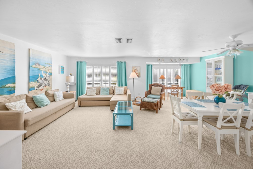 This two-story, two-bedroom townhouse offers a bright, open layout designed for relaxed coastal living. Thoughtfully maintained and continually updated by the owners, the home is comfortable, clean, and welcoming from the moment you arrive. New carpet was installed throughout in 2021, and new windows were added in 2020, enhancing both comfort and energy efficiency. Ceiling fans, central air conditioning, and heating keep the space comfortable year-round.