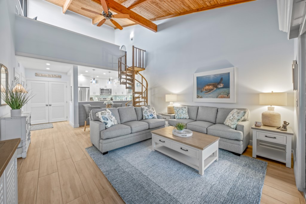 Step into your perfect Sanibel getaway at this spacious, fully updated beachside condo in a serene Gulf-front complex. Soaring cathedral ceilings, elegant tile and wood floors, and bright, open spaces create a welcoming, airy atmosphere from the moment you walk in.