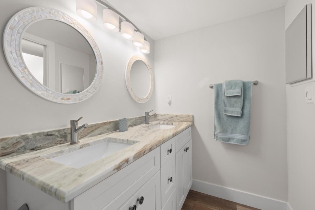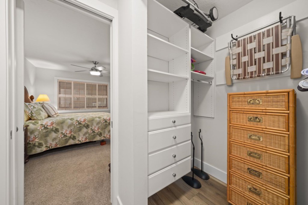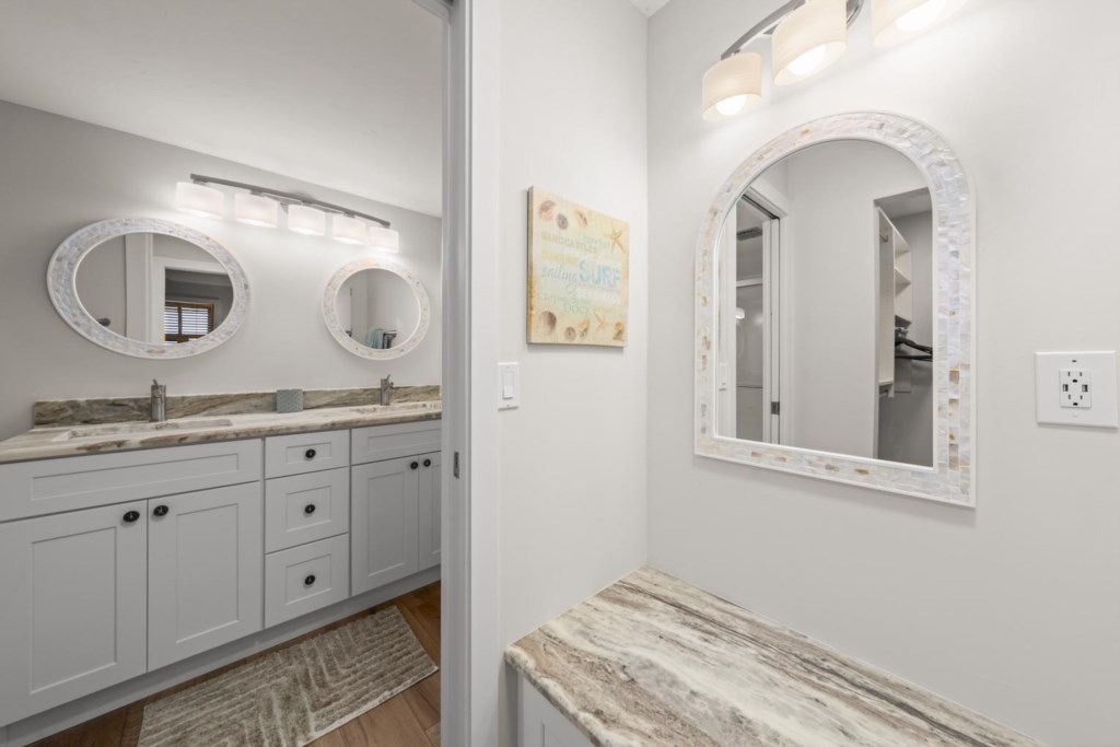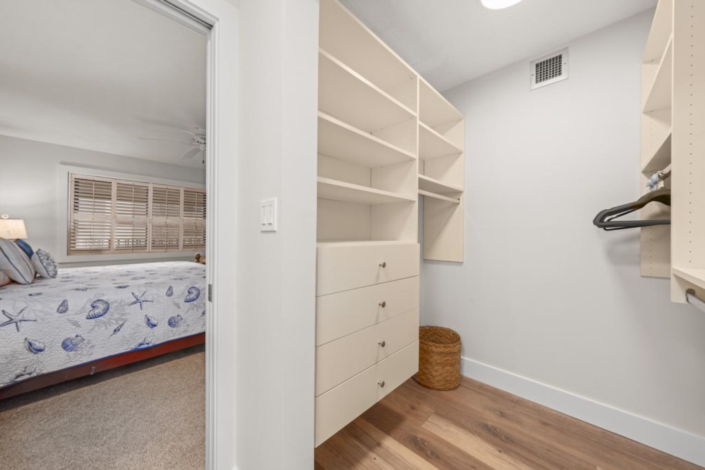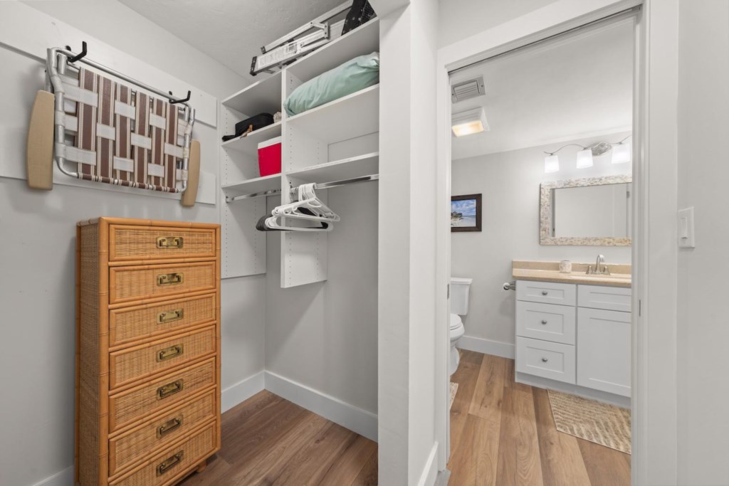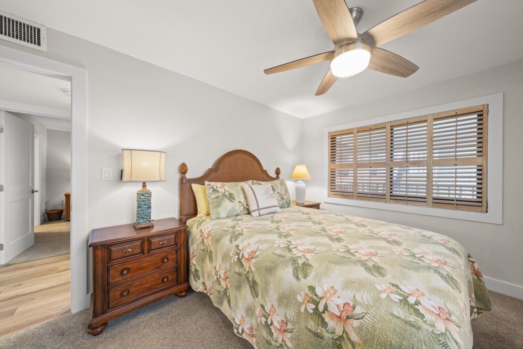 The open floor plan allows the kitchen, dining area, and living room to flow together effortlessly, creating an inviting coastal atmosphere that feels bright, relaxed, and easy. Whether you’re preparing a casual breakfast or winding down after a beach-filled day, the space feels connected and comfortable.