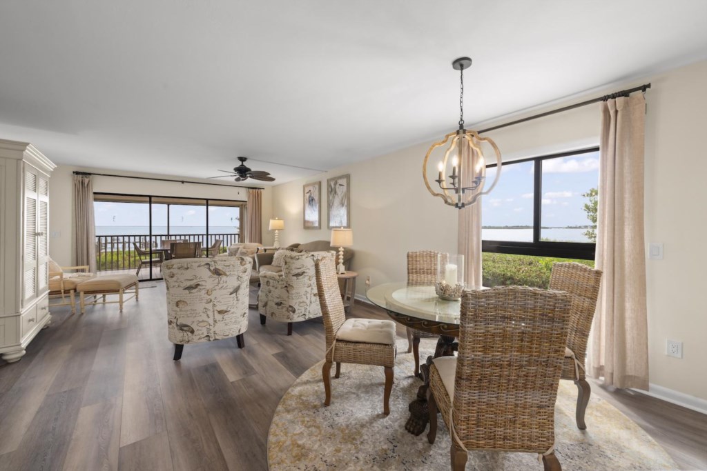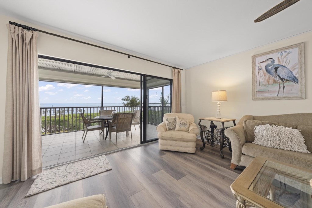 Set directly on Pine Island Sound, this spacious two-bedroom, two-bath residence invites you to slow down and soak in the views. Watch boats drift by from your living room, enjoy soft morning light over the bay, and unwind in the evenings as the water reflects the changing sky. With 1,500 square feet of living space, the condo feels open and relaxed, perfect for families or couples traveling together.
